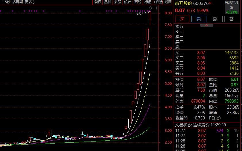 低价股方面,首开股份(维权)(600376)再度涨停,12个交易日11涨停,股价创近6年新高,山子高科(000981)、香江控股均连续5日涨停,通裕重工、永泰能源、美克家居、红豆股份等也纷纷涨停或涨超10%。